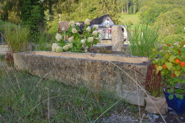 Kalksteintrog Herkunft aus Altkirch, Elsass Masse: 296cm x 60cm x 43cm Beckentiefe: 25cm