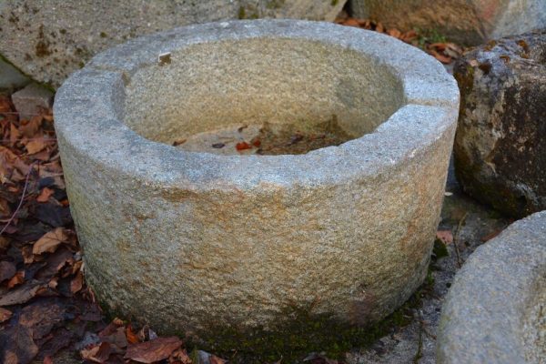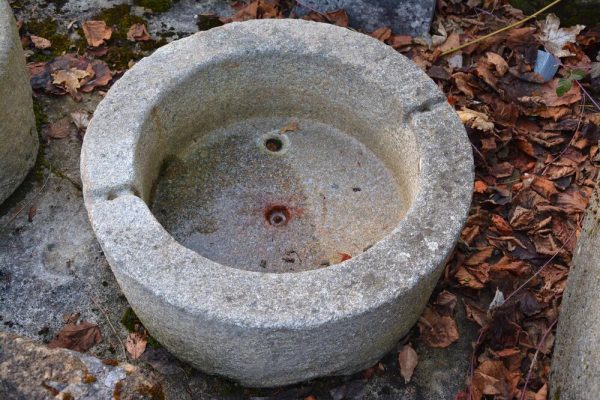 Granittrog rund, antik Herkunft aus Savoie, Frankreich Durchmesser 67cm, Höhe 33cm Beckentiefe 20cm