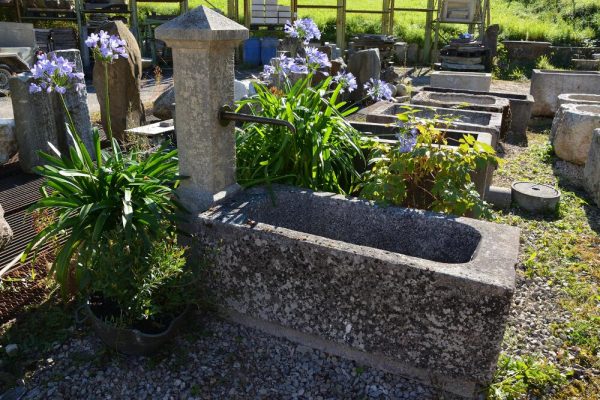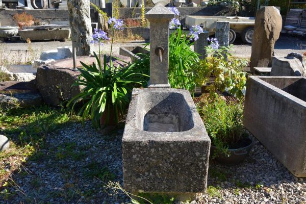 Heller Kalksteintrog, mit Sockel und Stock Eigenfabrikat Grösse 130cm x 60cm x 53cm Beckentiefe 35cm