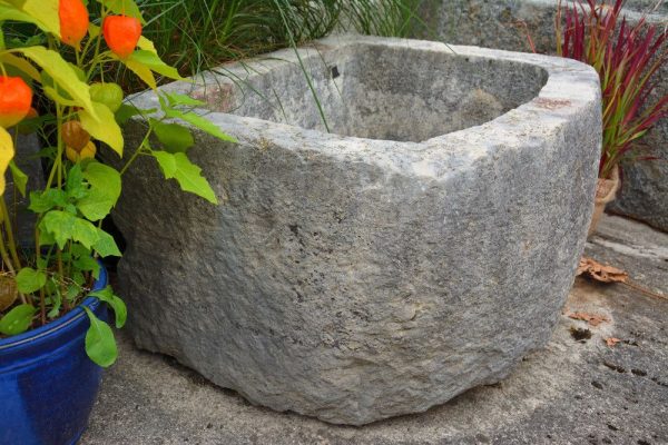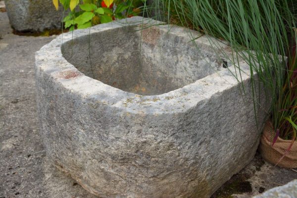 Kalksteintrog halbrund antik, Herkunft aus dem Kanton Jura Masse: 62cm x 52cm x 35cm Beckentiefe: 26cm