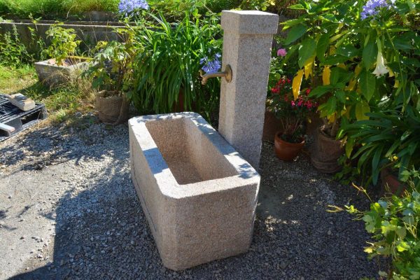 Rötlicher Granittrog Versenkter Spiegel am Becken Stock mit Hutprofil
