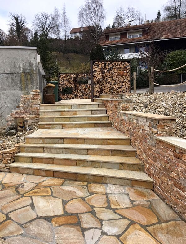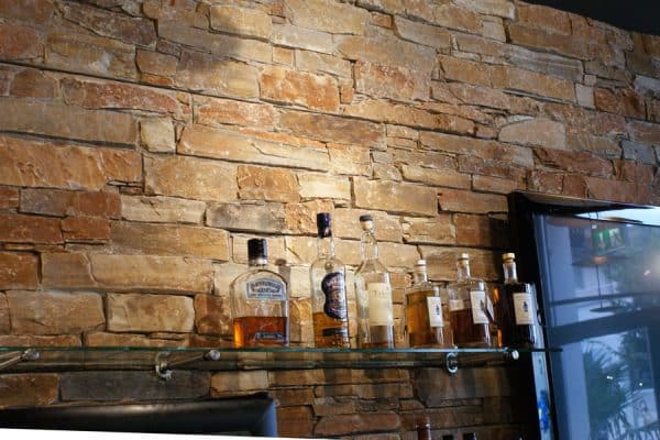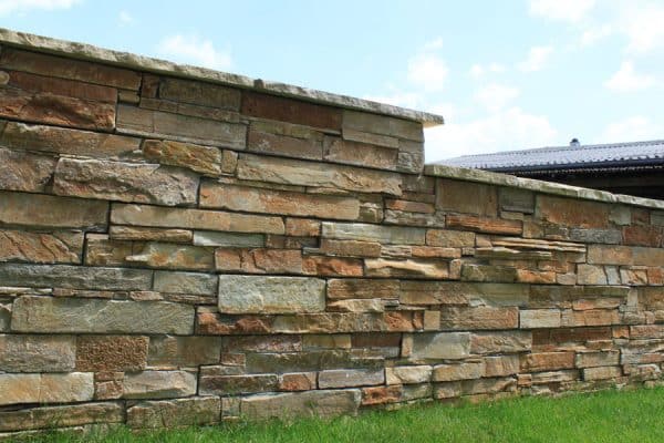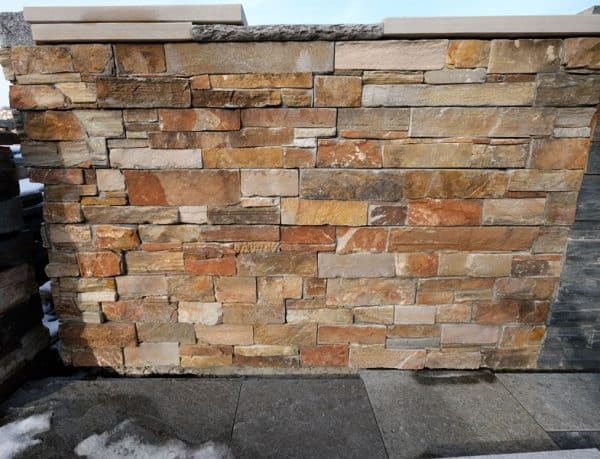 Mauerverkleidung Vorfabrizierte Elemente/Pannels à 60 x 15 cm 2.5-3.5 cm stark, Stossfugen verzahnt