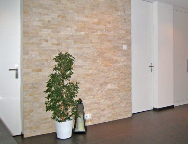 Mauerverkleidung Vorfabrizierte Elemente auf Netz 30×30 cm 1-3 cm stark, Rechteckige Riemchen 15×5 cm